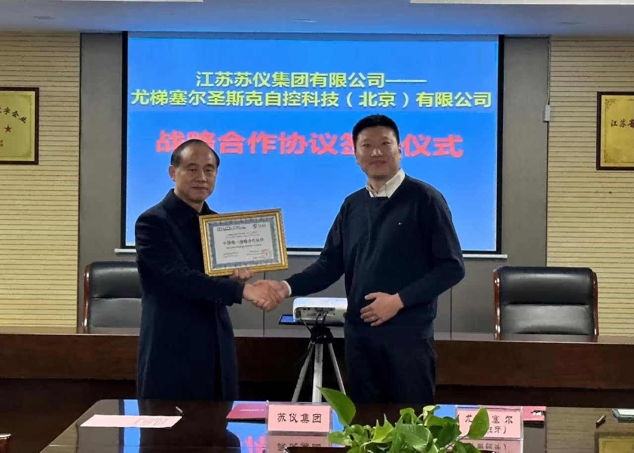 2月1日下午,江蘇蘇儀集團(tuán)有限公司、尤梯塞爾圣斯克自控科技(北京)有限公司西班牙尤梯塞爾主要領(lǐng)導(dǎo)層齊聚蘇儀集團(tuán)會(huì)議室,舉行了隆重的戰(zhàn)略合作簽約儀式。經(jīng)授權(quán),蘇儀集團(tuán)成為西班牙尤梯塞爾公司中國唯一戰(zhàn)略合作伙伴。西班牙尤梯塞爾公司總部位于西班牙巴塞羅那,是一家專業(yè)從事稱重系統(tǒng)、稱重傳感器、平臺(tái)秤、汽車衡等計(jì)量儀器儀表設(shè)備廠家。通過戰(zhàn)略合作,雙方將進(jìn)一步加強(qiáng)在稱重領(lǐng)域的各項(xiàng)服務(wù)工作。