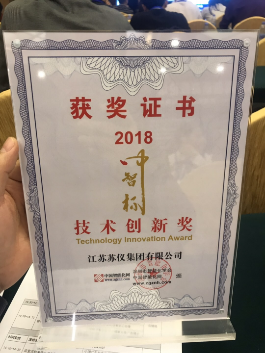 2018年11月23日下午,在深圳福田景明達(dá)酒店,由中國儀器儀表學(xué)會指導(dǎo),深圳市科學(xué)技術(shù)協(xié)會主辦,深圳市智能化學(xué)會、中國智能化網(wǎng)承辦的“深圳第二十一屆智能化技術(shù)應(yīng)用創(chuàng)新高峰論壇”之際,江蘇蘇儀集團(tuán)有限公司榮獲2018“中智杯”技術(shù)創(chuàng)新獎。